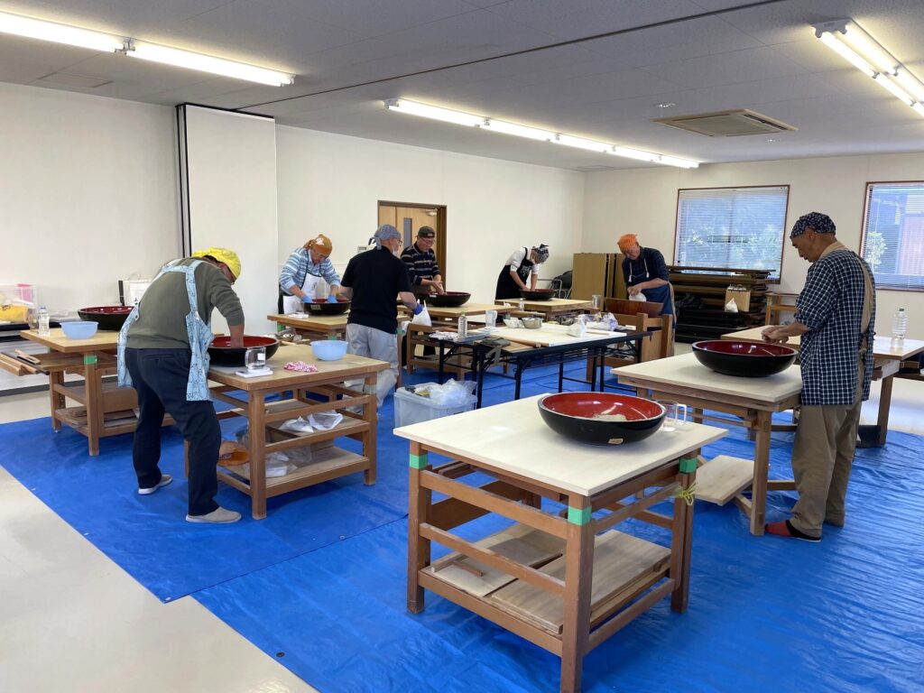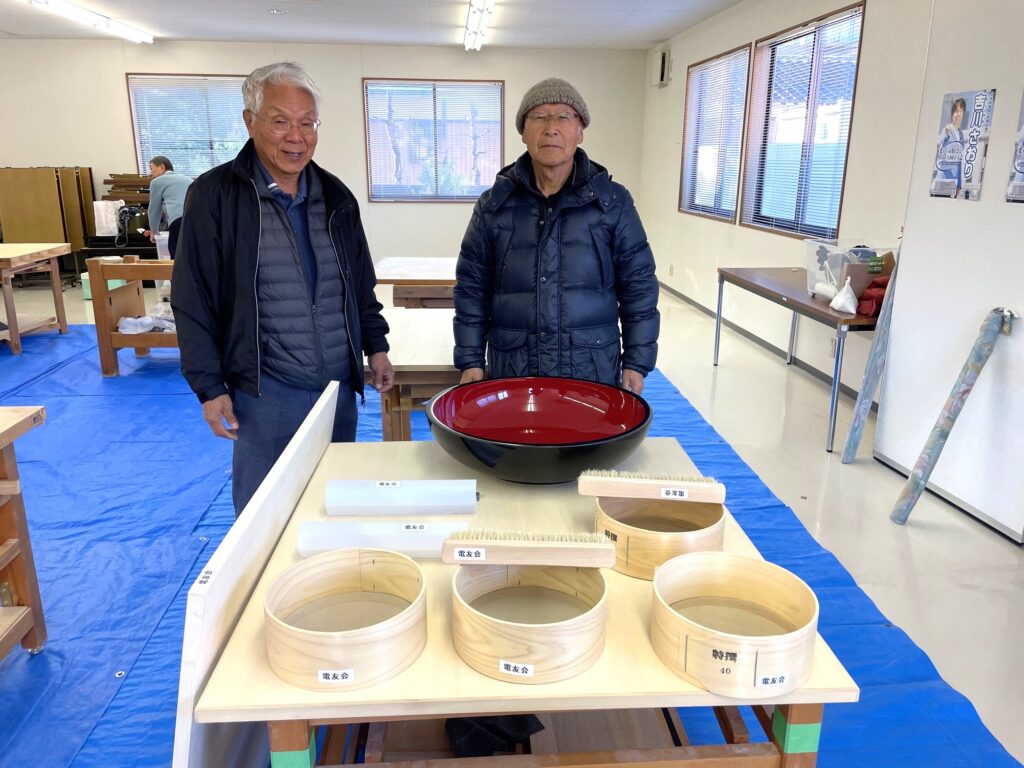 そば打ちボランティア活動支援物品を贈呈 福井県支部 福井県支部 2025.12.08 そば打ちボランティア活動支援物品を贈呈 福井県支部 12月6日(土)、ふれあいサロン和田中において、電友会福井県支部そば打ち同好会の代表、世話人へそば打ち道具を贈呈しました。早速、同日贈呈された道具も使ってそば打ちしました。12月17日(水)の午前は足羽福祉会就労センタースマイルを招いての体験会、午後は電友会会員の体験会を予定しています。【大塚敏郎さん記】 世話人の松原誠さん、同好会代表の八尾英樹さん(右) 9名が参加しての同好会のそば打ち模様