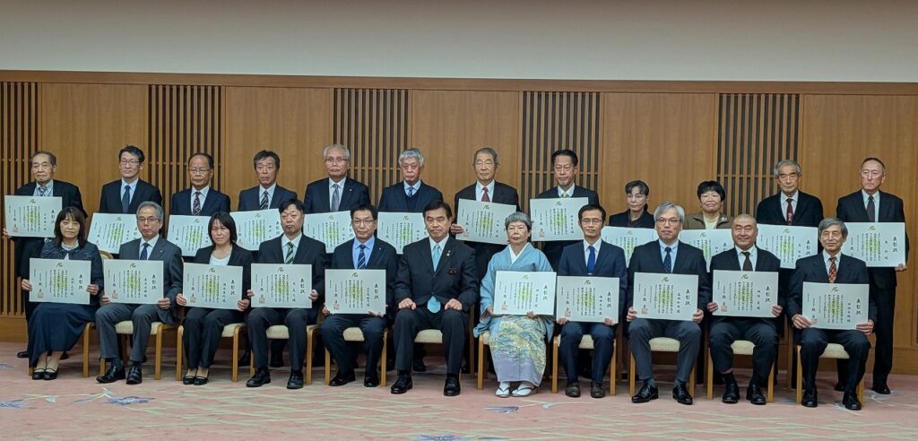 本表彰は県が毎年実施しているもので、日頃から自主防災活動を通じて地域防災力向上に寄与した団体・個人を対象に表彰しています。今年度は県全体で7団体と防災士25名が表彰されました。その中にNTTのOBが2名、市・町からの推薦に基づき表彰されました。