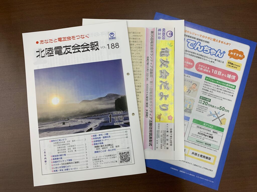 会報188号(新春号)を発行しました 北陸・石川県支部 2025.12.25 会報188号(新春号)を発行しました 師走の慌ただしいころですが、12月25日(木)、会報の発送作業を行いました。もうすぐ皆様のお手元に届きます。お楽しみに! テルウェルのみなさまにもお手伝いいただきました 第188号 新春号