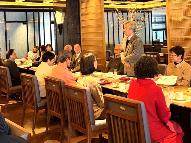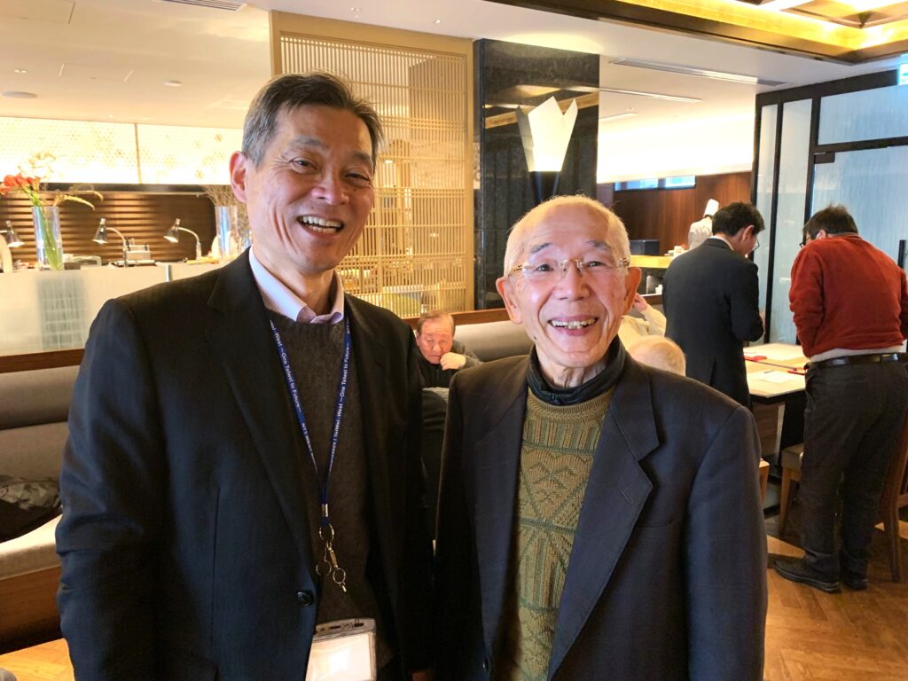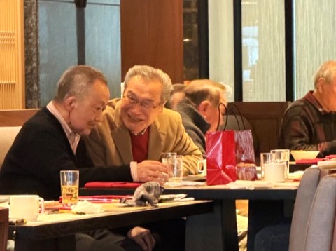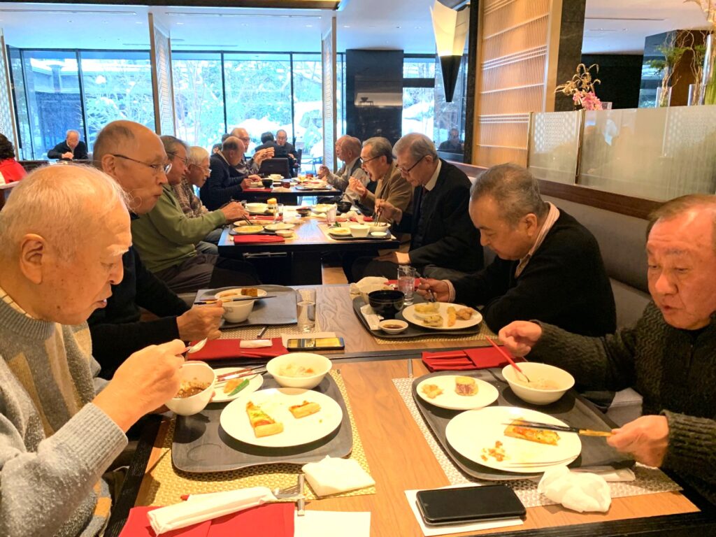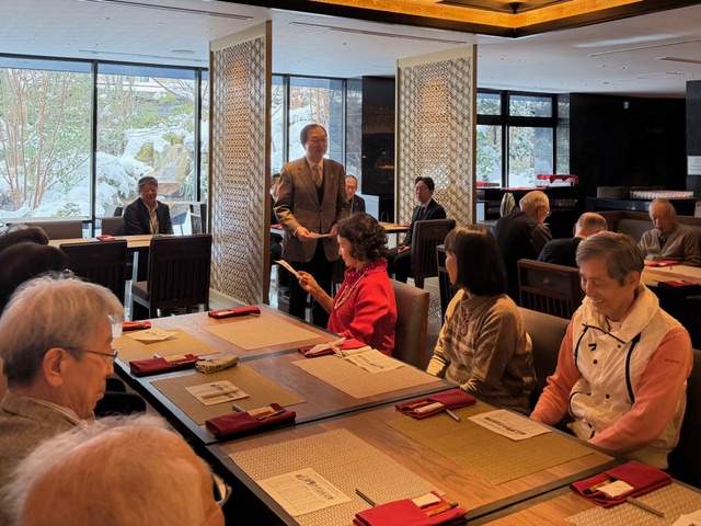 お楽しみ抽選会では、五社谷俊幸さん、西川正十さん、松本明美さんが当選し美味しいカステラをゲット。また、新入社員時の上司と部下であった新田曉人さん(88歳)と織田昭次さん(62歳)が、40年振りに元気な姿を交歓し合っていました。結びでは山原伸二さん(89歳)が「フレーフレー電友会!!」とエールを切り、新春に相応しい明るく賑やかなランチ会となりました。
