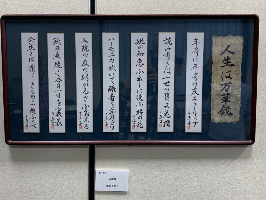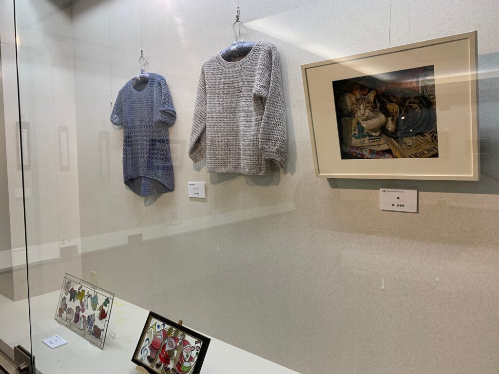 会場には、絵画、書、写真、絵手紙、和歌、俳句、川柳、工芸・手芸など24名、44作品が展示されています。