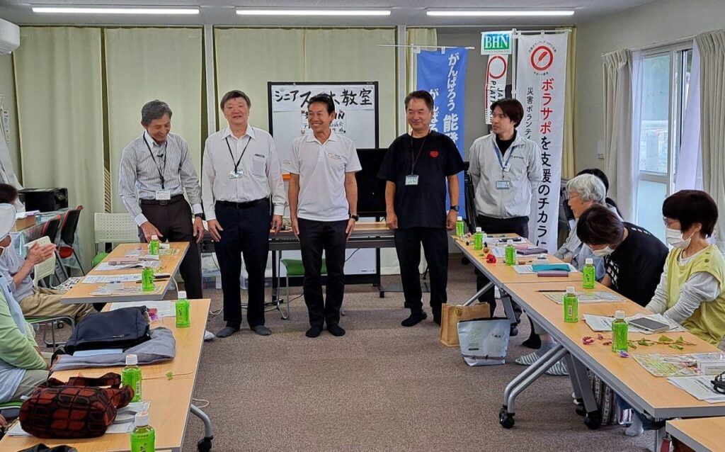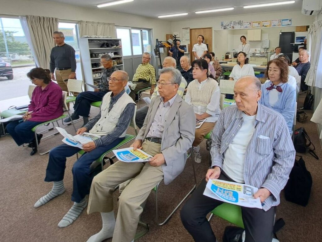 お腹を満たしたところで一行は、蛸島町第一団地集会所に入りました。当日午前中には復興支援プロジェクトの姉﨑幸雄さん、荒川修司さん、坂下武吉さん、中川敏弘さんによるスマホ教室も開催されました。
