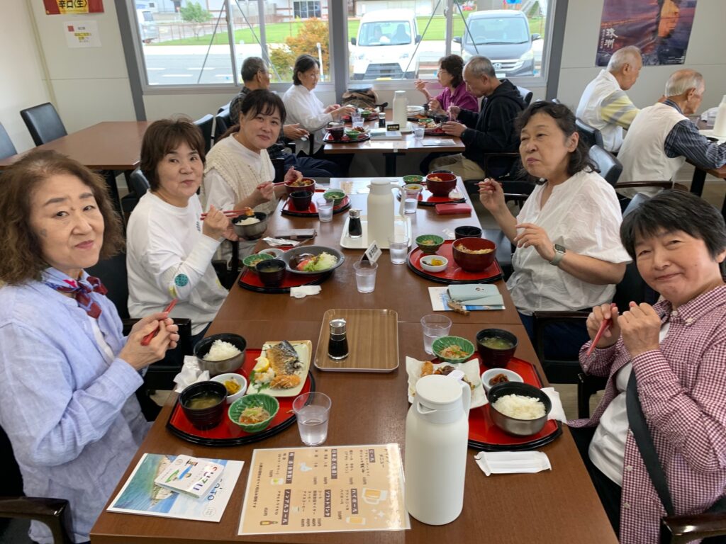 昼食は「すずなり食堂」を予約しました。ここは復興支援に携わる方のオアシスとなっていて、ボリューミーかつ美味しいランチが好評で、各自、お刺身定食やたこかつ丼、塩焼鯖定食などに舌鼓を打っていました。