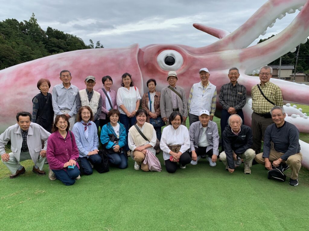 最後の訪問地とあって、皆さんはイカ墨ソフトを食べたり、名物の芋菓子を買い、イカのオブジェをバックに写真を撮り合ったりと、最後まで旅の終わりを楽しんでいました。
