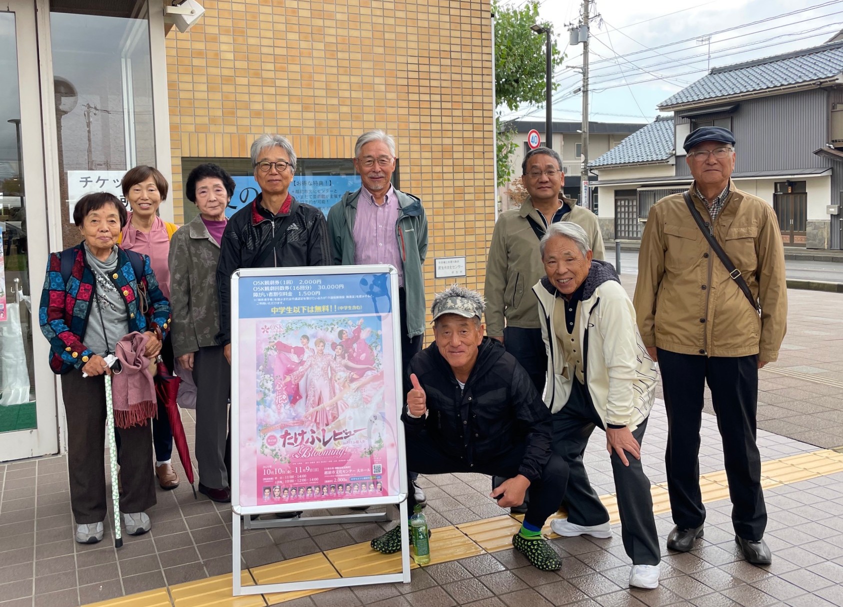 10月27日(月)、福井県支部は昨年に続き今年もたけふ菊人形とOSK日本歌劇団によるたけふ菊人形グランドレビューショー2025を観劇しました。開演30分前から入場できるので今回参加した10名はそれぞれ思いの席でゆっくり観劇することが出来ました。