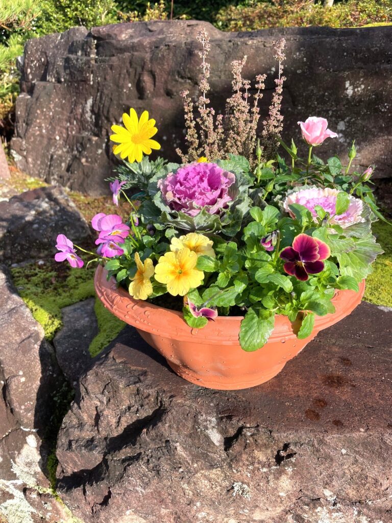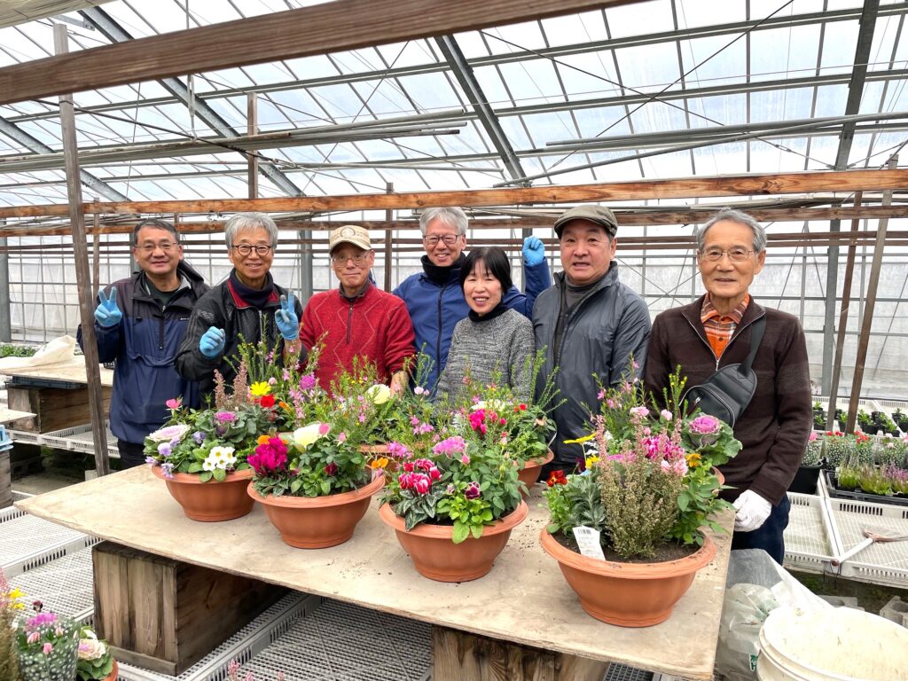 今年も12月10日、苗のはっとり(越前市)のハウスにおいて会員8名が参加して花の寄せ植え教室を開催しました。最初に店主の服部さんから、寄せ植えの基本、今後の水やり追肥などの維持管理等を教わり、早速各自が8種類のポットに入った花を思い思いに鉢に植えしました。春の植え替等を上手にすればずーと鑑賞できるとのことです。一番悪いのは水と肥料のやりすぎ(過保護)とのことです。【大塚敏郎さん記】
