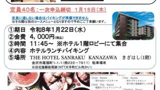 【予約受付開始】新春おしゃべり&ホテルランチバイキングを開催します! 石川県支部 焼きたてのローストビーフや手毬寿司、豪...